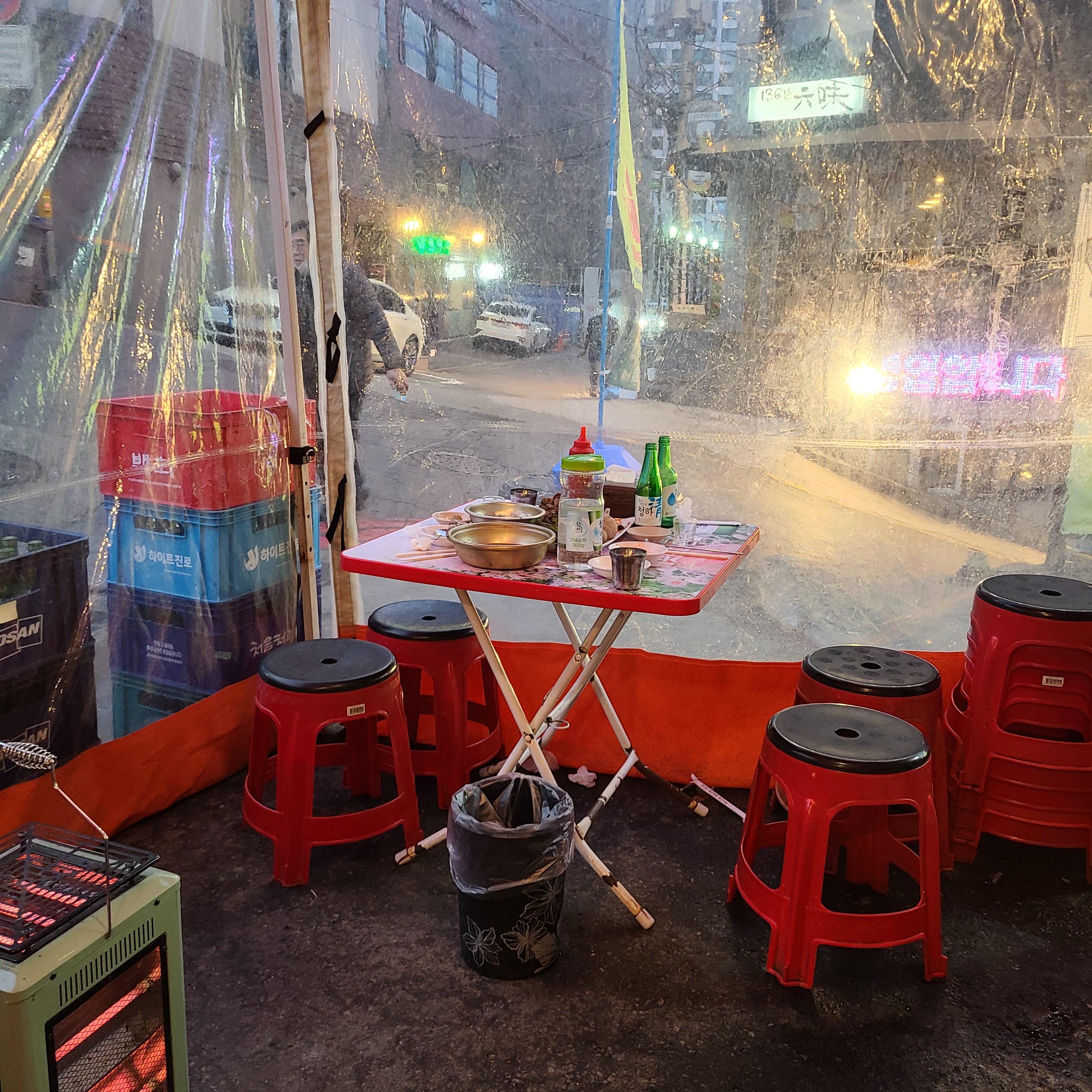 저희가 앉았던 테이블이예요 포장마차분위기 갬성갬성 가득